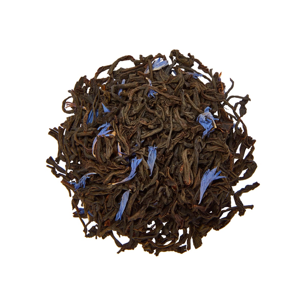 ゴッホの名作「アイリス」の青を思わせるヤグルマギクの花びらが、天然ベルガモットオイルと一芯二葉の茶葉との力強いブレンドに色と香りのコントラストを加えます。美しく、味わい深い一品です。